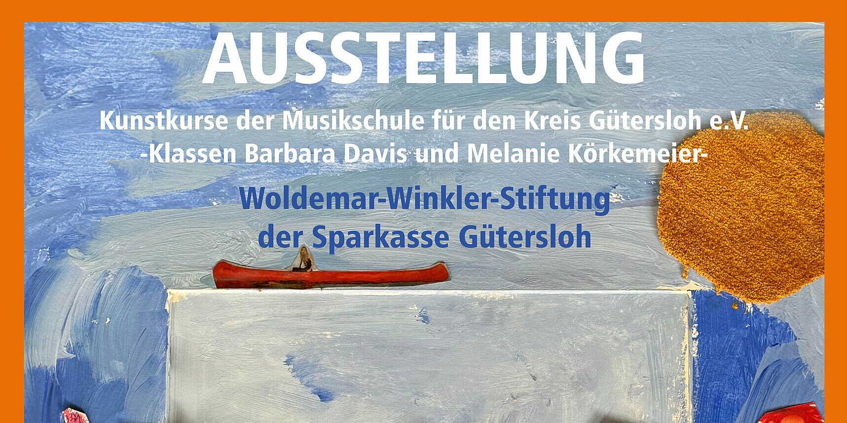 Für die Ausstellung haben Kinder und Jugendliche aus den Kunstkursen der Musikschule für den Kreis Gütersloh auf den Spuren des Gütersloher Malers, Zeichners und Collagenkünstlers Woldemar Winkler gearbeitet. Wie ihr künstlerisches Vorbild hat sich jede Schülerin und jeder Schüler mit einem eigenen Thema beschäftigt und erzählt assoziativ eine persönliche Geschichte, die sich mithilfe von Farben, Fundstücken und unterschiedlichen Materialien bildnerisch entfaltet.