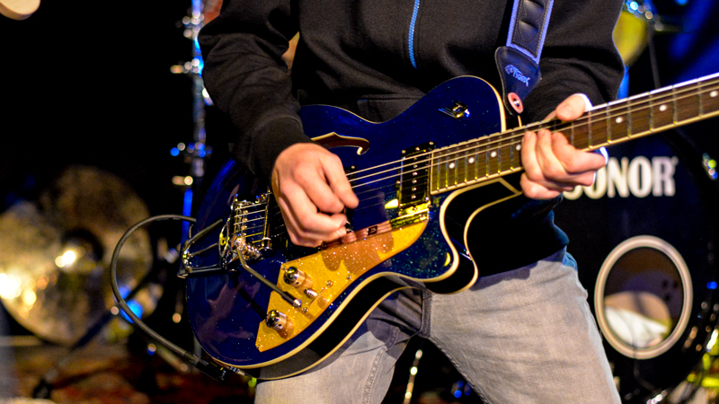 Die stilistische Vielseitigkeit, aber auch die Vorbilder aus dem Rock- und Popbereich haben die E-Gitarre in den letzten Jahren zu einem der beliebtesten Instrumente gemacht. Sie wird als Begleit- und Melodieinstrument in Bands und Ensembles eingesetzt, kann aber auch wunderbar als Soloinstrument gespielt werden. Heutzutage gibt es E-Gitarren in verschiedenen Größen, sodass mit dem Unterricht schon im Grundschulalter, ohne Vorkenntnisse gestartet werden kann. Neben dem Instrument wird ein Gitarrenverstärker und ein Kabel benötigt. Zum Unterricht in der Musikschule bringen die Schüler ihre eigene E-Gitarre mit, Verstärker sind vorhanden.