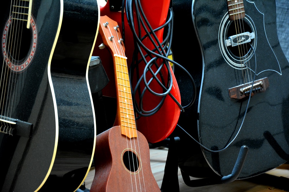Die Ukulele ist wie eine Gitarre aufgebaut, hat aber nur vier, statt sechs Saiten und klingt wesentlich heller. Die spezielle Stimmung macht den besonderen, sehr fröhlichen Klang dieses Instruments aus. Sie wird in vier verschiedenen Größen gebaut. Durch die geringere Saitenanzahl und den damit verbundenen höheren Abstand der Saiten zueinander hat man in der Regel einen leichteren Einstieg in das Spielen, daher auch für Kinder sehr geeignet.
