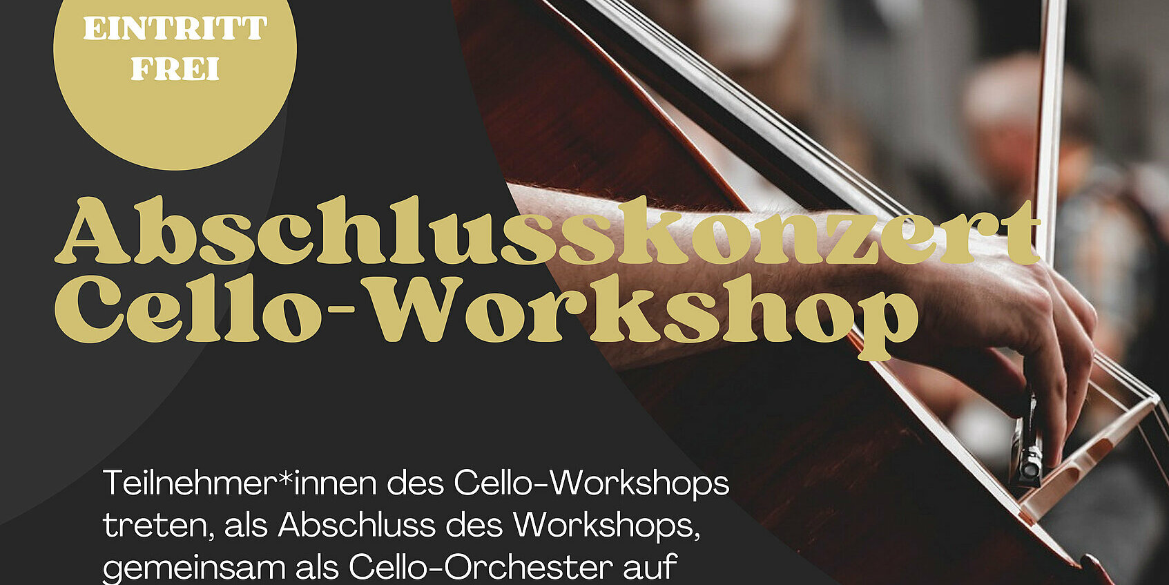 Teilnehmer*innen unseres Cello-Workshops studieren währen der gemeinsamen Proben Stücke ein und werden, um den Workshop krönend abzuschließen, als Cello-Orchester auftreten!
