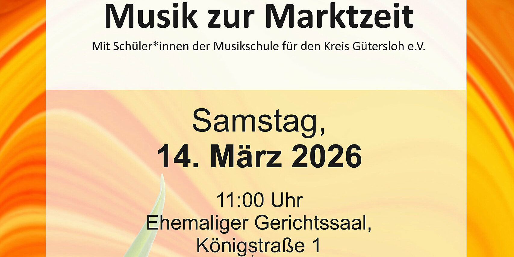 Am Samstag, d. 14. März 2026 um 11h findet das im Frühjahr und Herbst zur Tradition gewordene Konzert „Musik zur Marktzeit“ im ehemaligen Gerichtssaal in der Königstraße 1 parallel zum Markt auf dem Berliner Platz statt.
