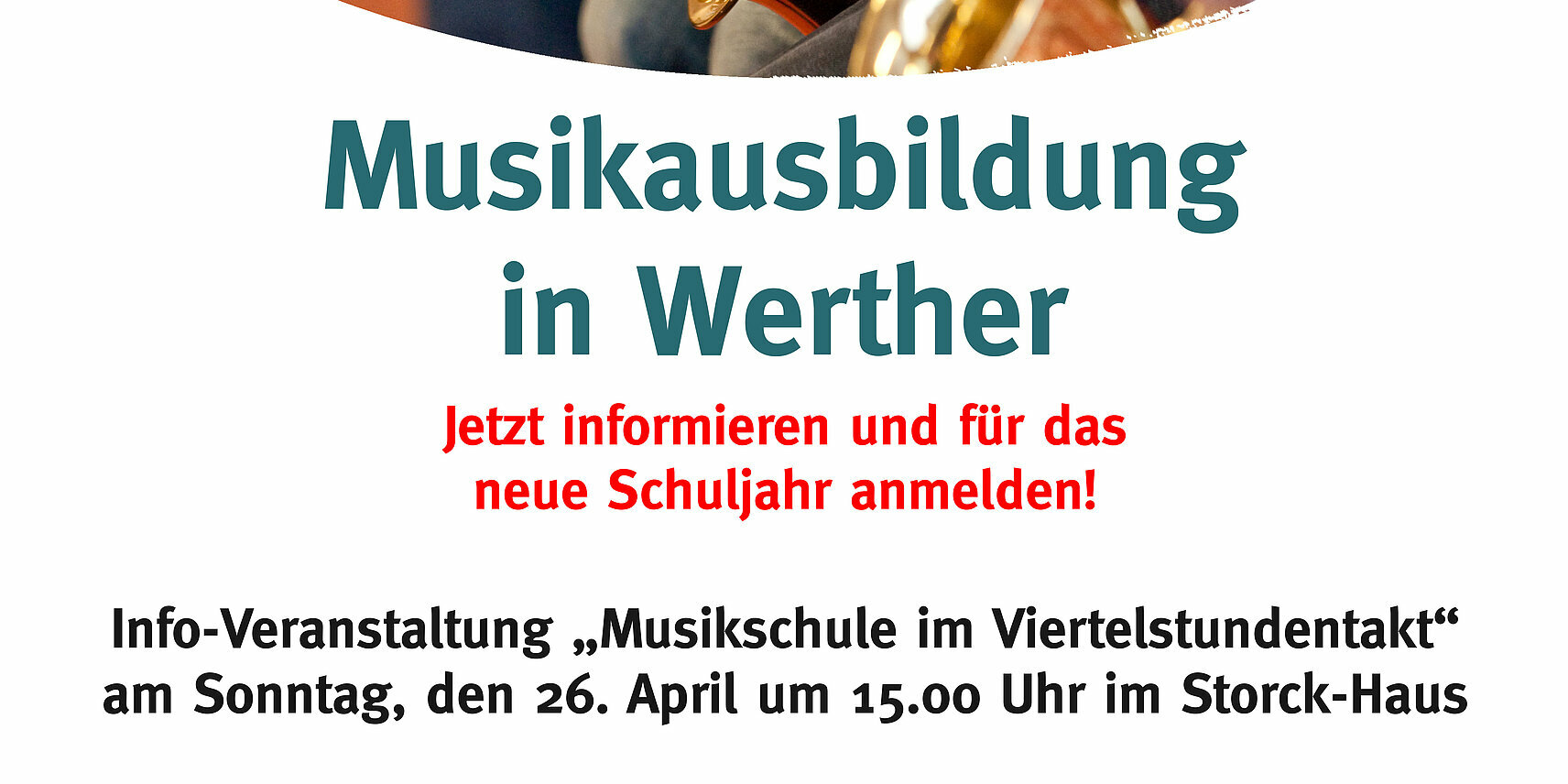 In der Zeit von 15 – 17 Uhr können Interessierte im Viertelstundenrhythmus verschiedene Instrumente kennenlernen wie Klarinette, Saxophon, Trompete, Posaune, Blockflöte, Querflöte, Fagott, Oboe, Geige, Cello, Gitarre, E-Gitarre, E-Bass, Akkordeon, Klavier, Keyboard, E-Piano und Schlagzeug. Zudem gibt es eine Mitmach-Aktion für Kinder im Vorschulalter sowie Informationen rundum den elementaren Musikunterricht vom Baby bis zum Vorschulkind.